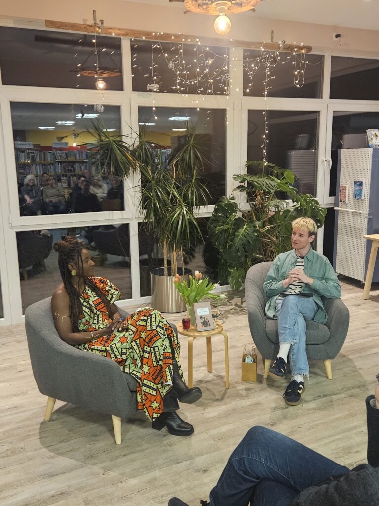 Die Geschichten sind „meine Vergangenheit, meine Gegenwart und den aktuellen Geschehnissen nach zu urteilen leider auch meine Zukunft: Alltagsrassismus und Mikroaggressionen sind mein Alltag als Schwarze Frau, meine Realität, der ich mich nicht entziehen kann“ – diese Worte aus dem Vorwort bilden eine passende Überschrift zu dem anschließenden Publikumsgespräch, das Tobias Bachmann von „Büsum bleibt bunt“ moderierte und mit eigenen Fragen einfühlsam und zugleich zielführend eröffnete: Vor allem die Frage nach der Resilienz, die aus der Auseinandersetzung mit dem Schmerz für die Autorin erwachsen konnte und die nach der Solidarität, die sie sich von den Menschen, die nicht selbst von Rassismus betroffen sind, wünscht, gaben noch weitere Einblicke. „Solidarität ist ein Marathon – sie kann durch konkrete solidarische Handlungen, wenn man Rassismus miterlebt, bestehen, aber dazu gehört auch, sich weiterzubilden und mit den rassistischen Strukturen unserer Gesellschaft auseinanderzusetzen und immer wieder laut gegen Rassismus Stellung zu beziehen“ lautete Brigitte Malungos umfassende und zugleich motivierende Antwort.